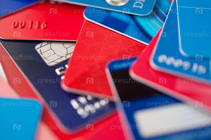 Куча пластиковых кредитных карт крупным планом