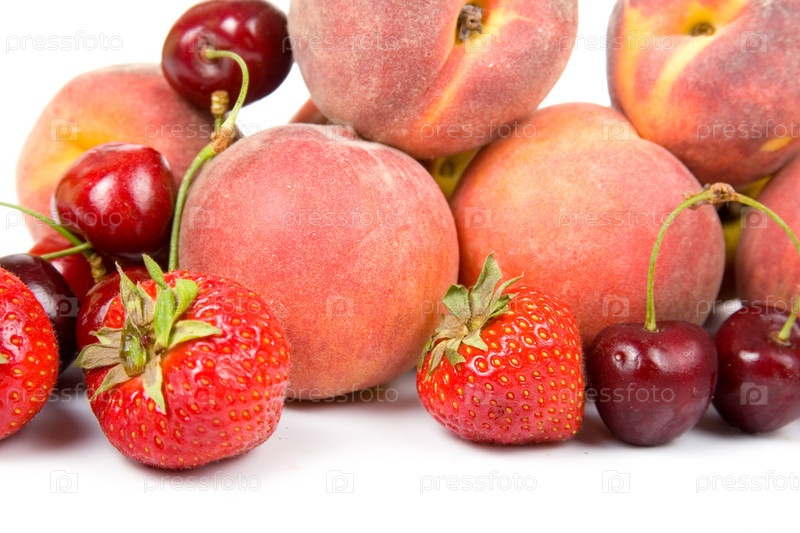 Персики, вишня и клубника