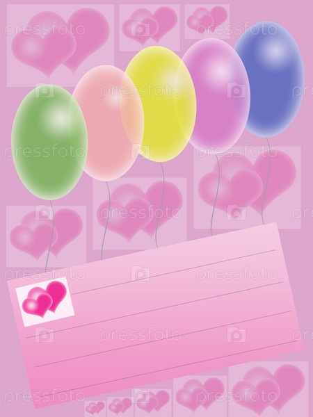 Поздравительная открытка с воздушными шариками и сердечками