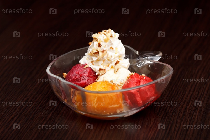 Фруктовый щербет с ванильным мороженым