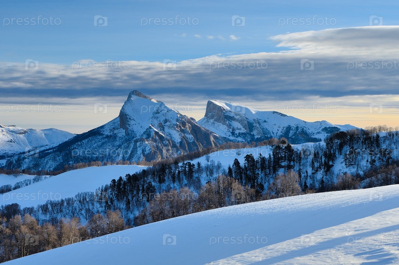Зимние горы Адыгеи в утреннем свете