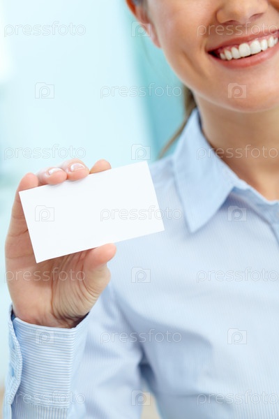 Девушка показывает визитку