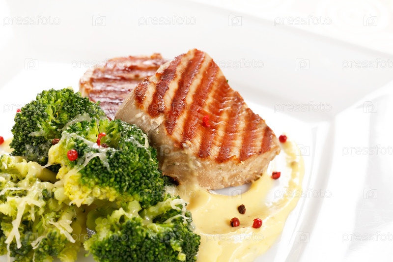 Стейк из тунца с брокколи