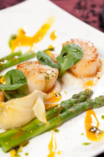Запеченные гребешки со спаржей