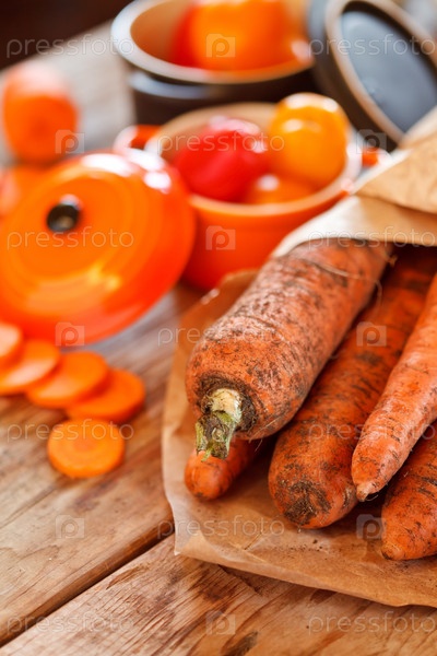 Свежая морковь на столе
