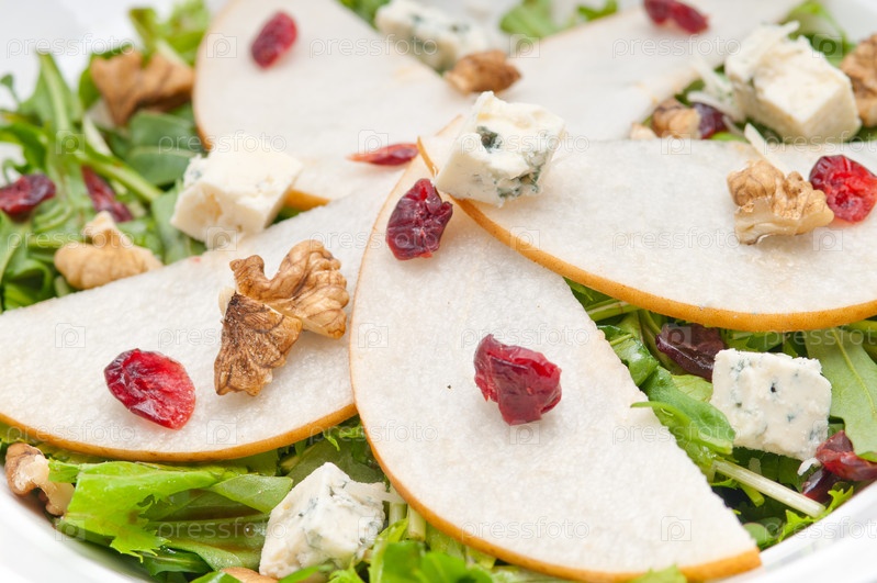 Свежий салат с грушей, рукколой и сыром горгонзола