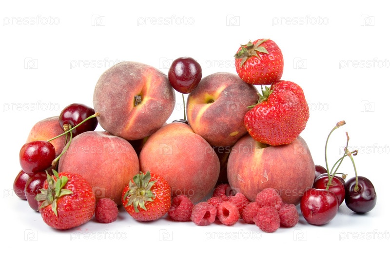 Фрукты и ягоды на белом