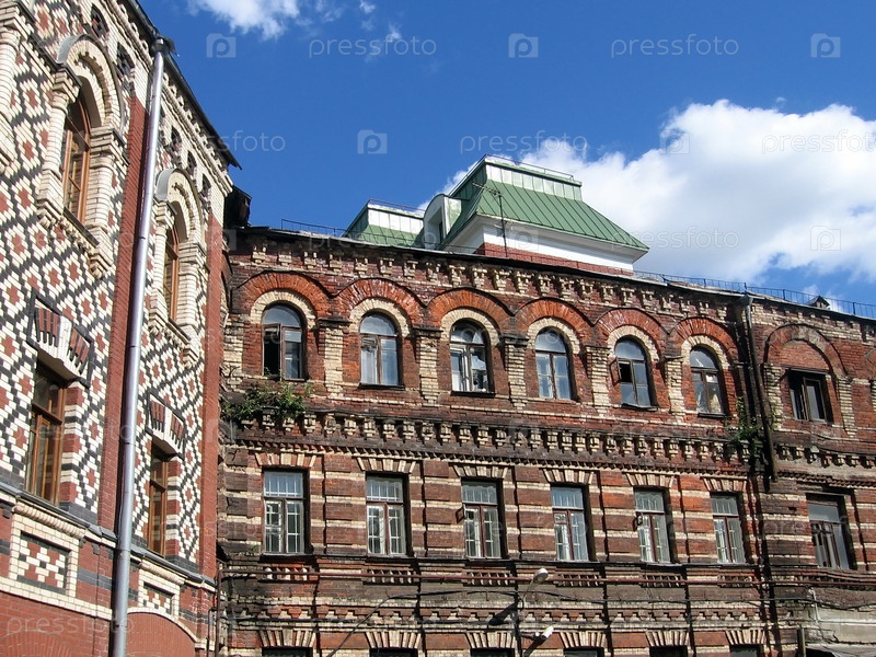 Разноцветные пестрые кирпичные стены старого дома