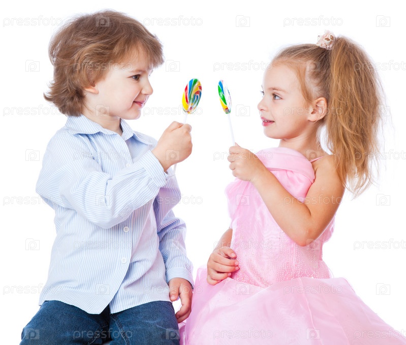 Мальчик и девочка с леденцами