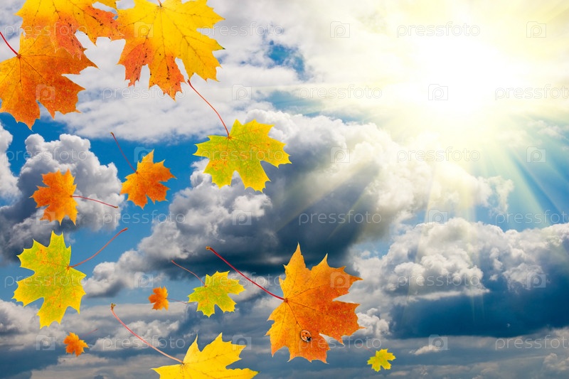 Кленовые листья на фоне неба