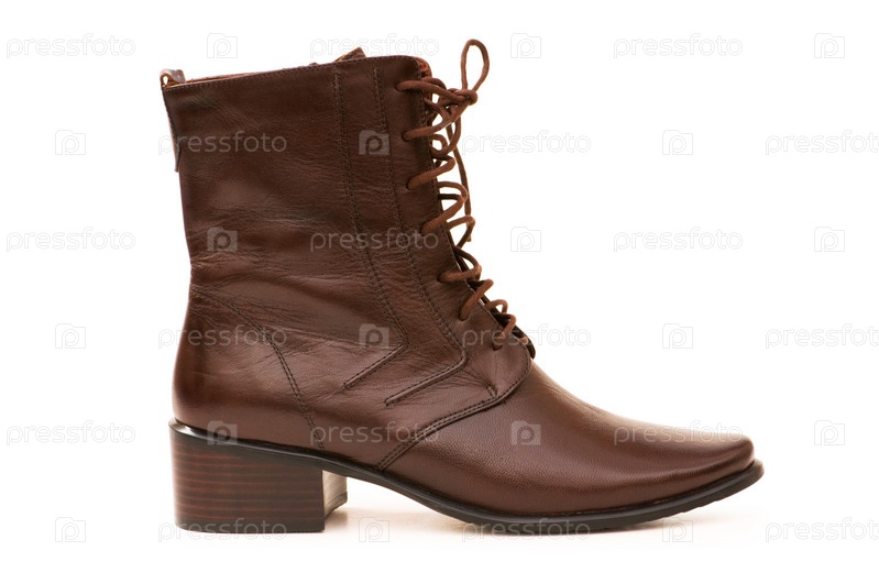 Коричневый сапог на белом фоне