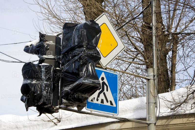 Светофор заклеенный пластиковым пакетом