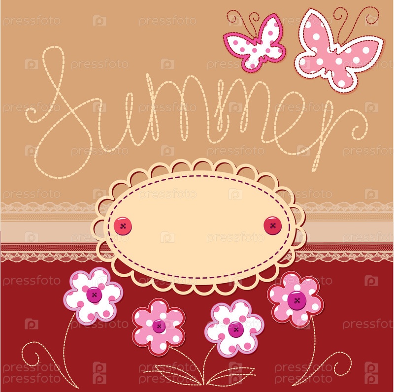 Романтическая летняя открытка с кружевами, бабочками и цветами