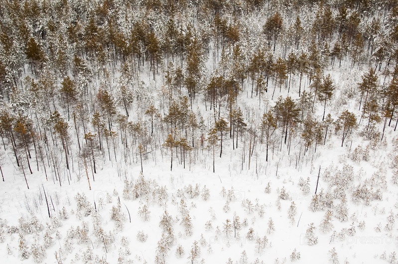 Вид с воздуха на зимний лес