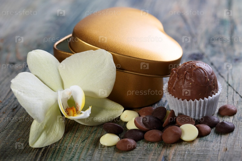 Белая орхидея и конфеты ручной работы