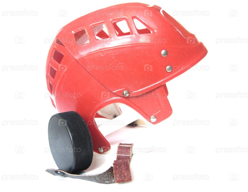 Шлем хоккеиста и шайба