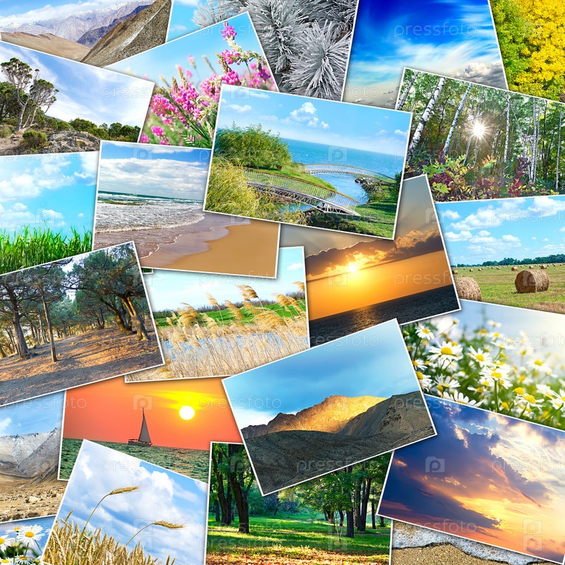 Коллаж из многих фотографий природы