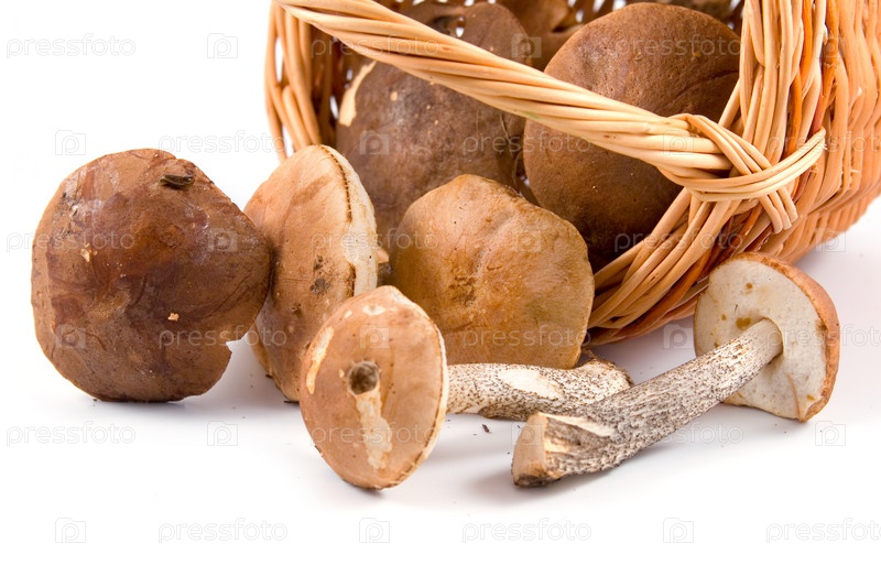 Грибы в корзинке на белом фоне