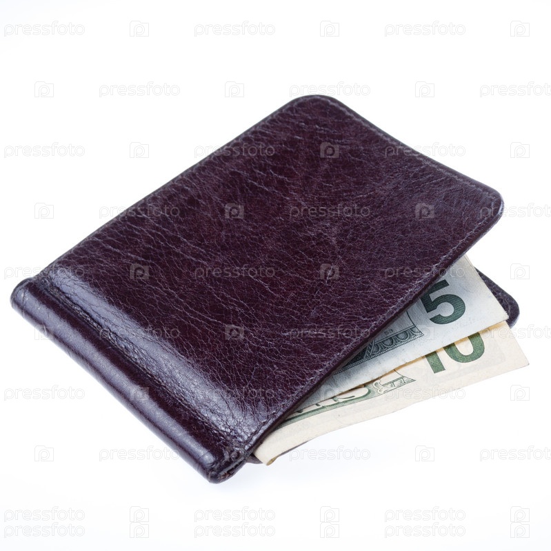 Коричневый кожаный бумажник с банкнотами