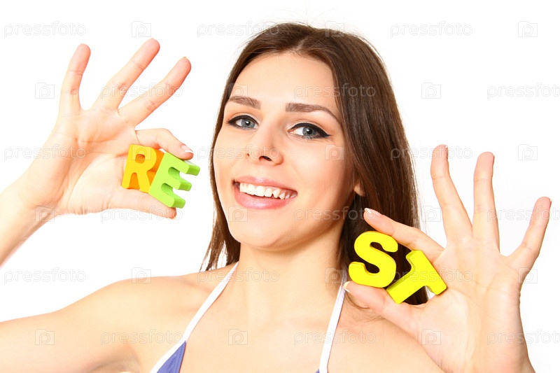 Сексуальная девушка в купальнике на белом фоне