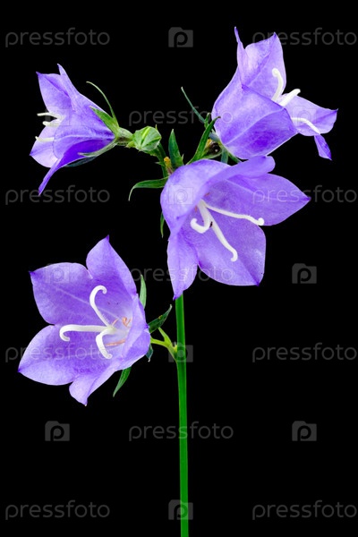 Сиреневые колокольчики на черном фоне