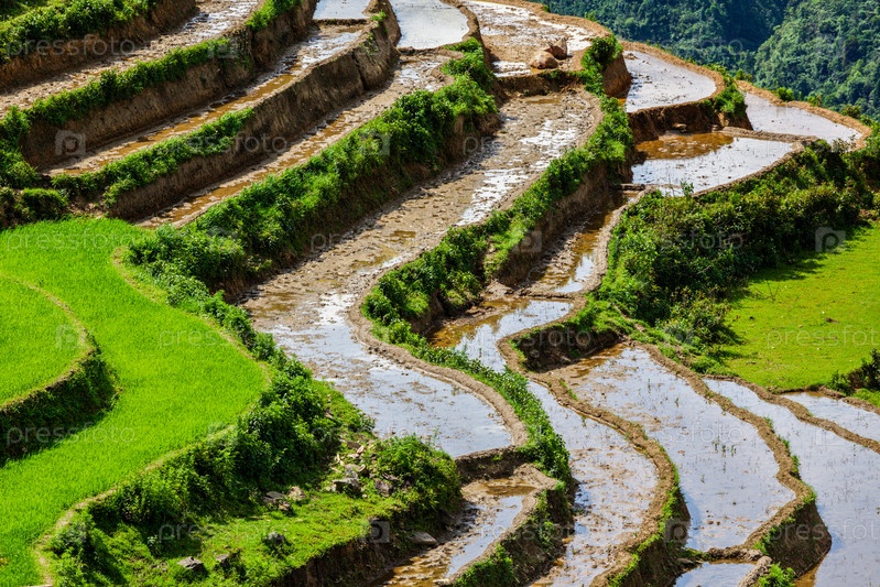 Рисовые террасы (рис-сырец). Вблизи села Кат Кат, вблизи Сапа, Муи Не