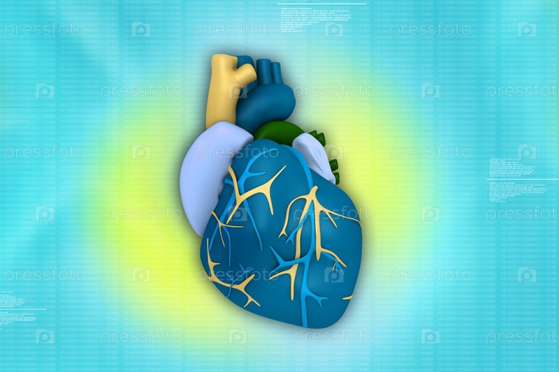 Цифровая иллюстрация, человеческое сердце в медицинском фоне