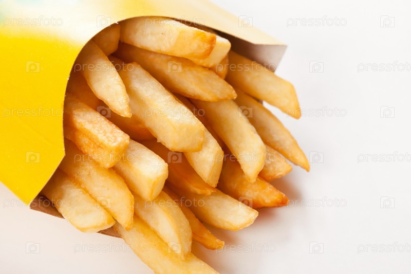 Картофель фри на белом фоне