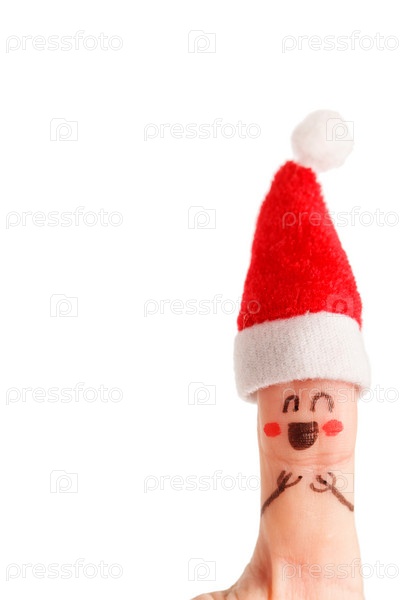 Палец, одетый в колпак Санта-Клауса