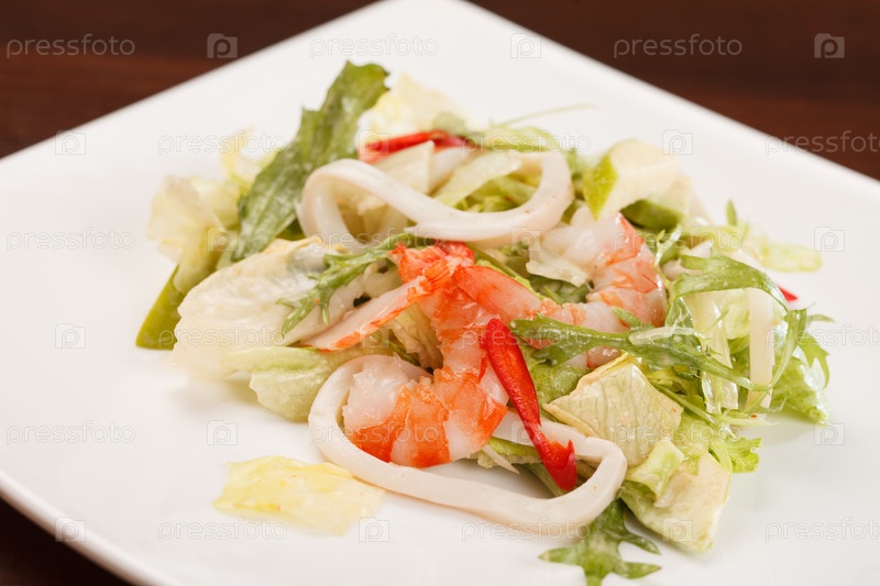Салат с кальмарами и креветками