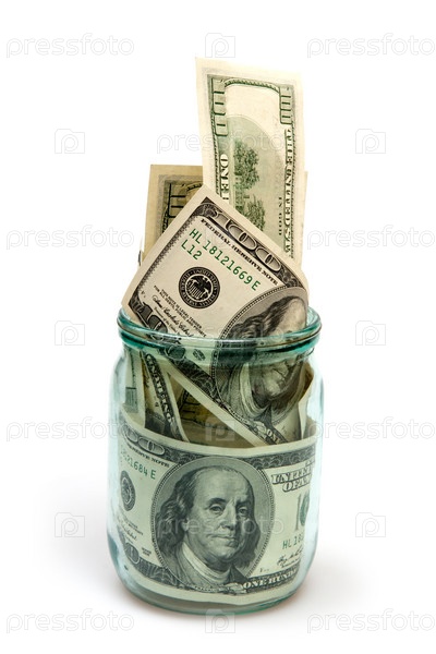 Стодолларовые купюры в стеклянной банке