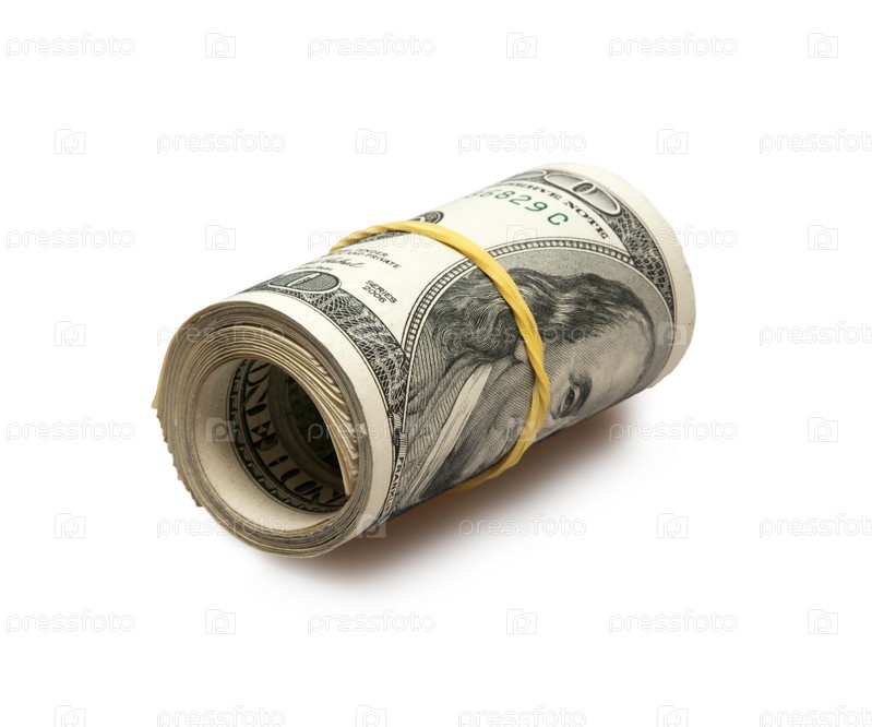 Пачка долларовых купюр, скрученная в рулон