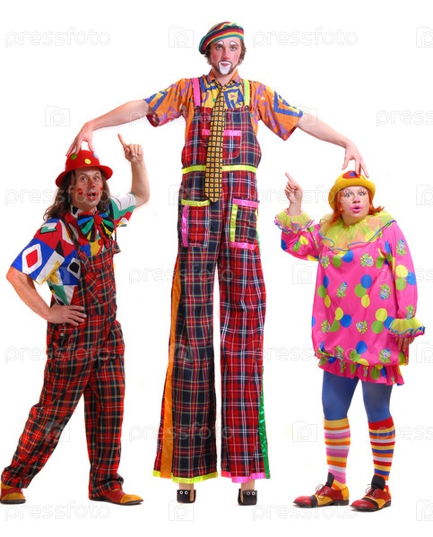 Три клоуна на белом фоне