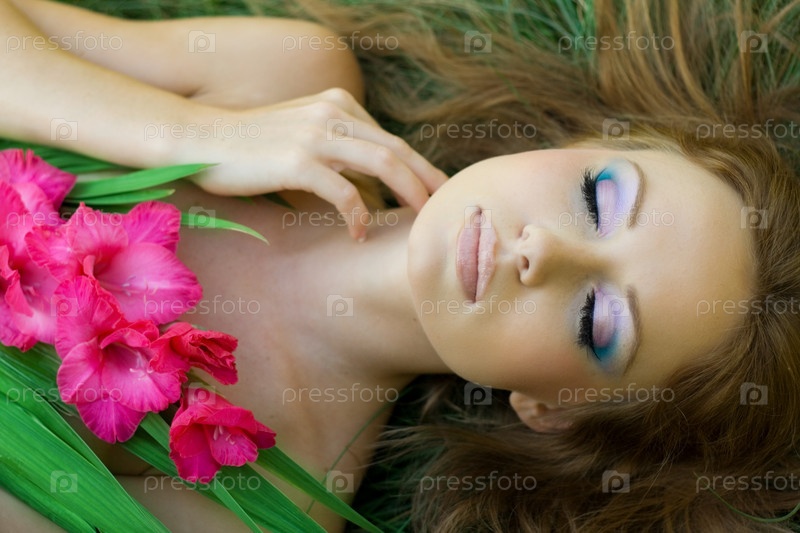 Красивая молодая девушка с цветами крупным планом
