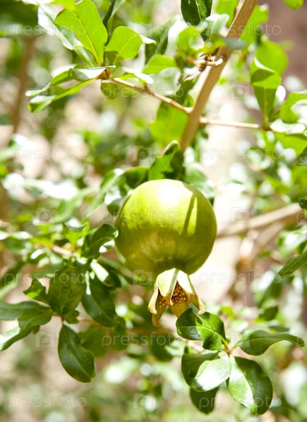 Незрелый гранат на ветке гранатового дерева