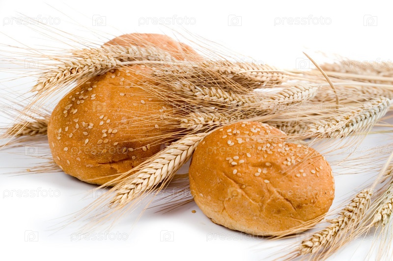Булочки с кунжутом и пшеничные колосья