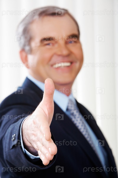 Улыбающийся бизнесмен протягивает руку