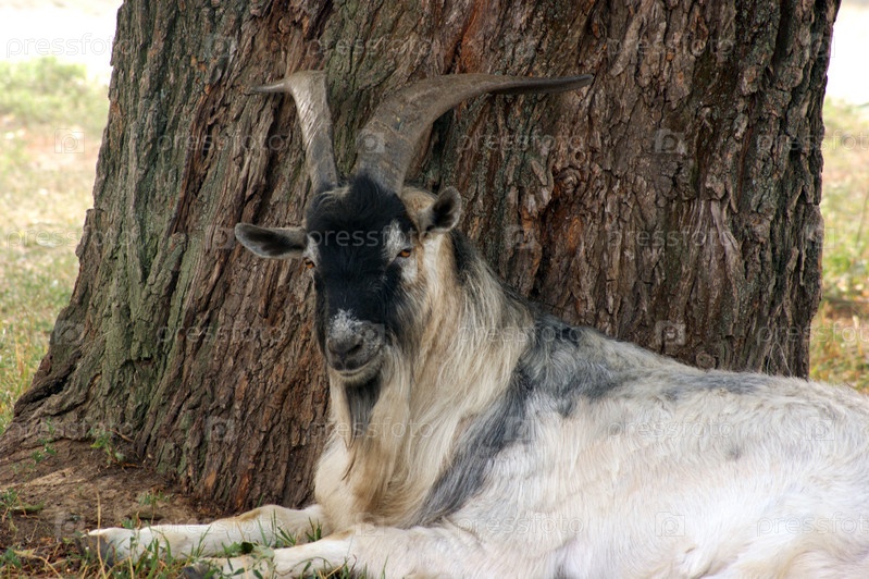 Козел лежит у дерева