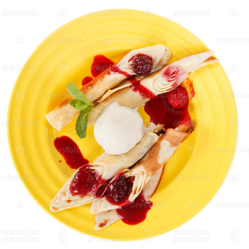 Блинчики с мороженым и соусом