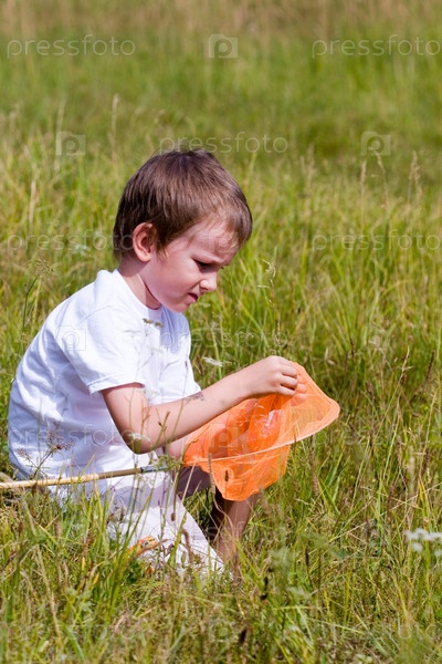 Мальчик ловит бабочку