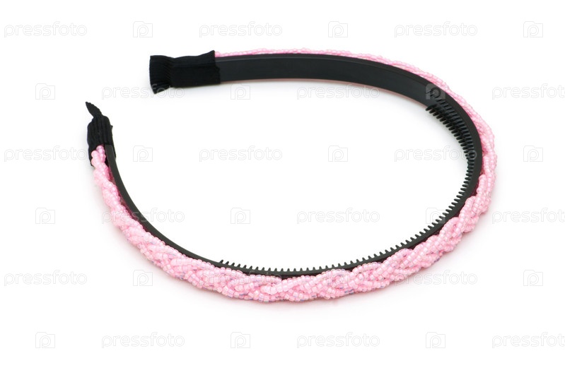 Розовый ободок для волос в виде косички на белом фоне