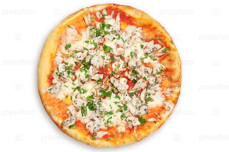 Итальянская пицца с курицей на белом фоне