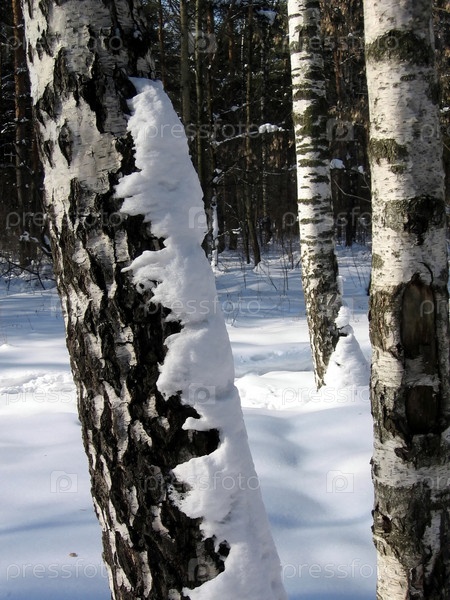 Березы в снегу в зимнем лесу