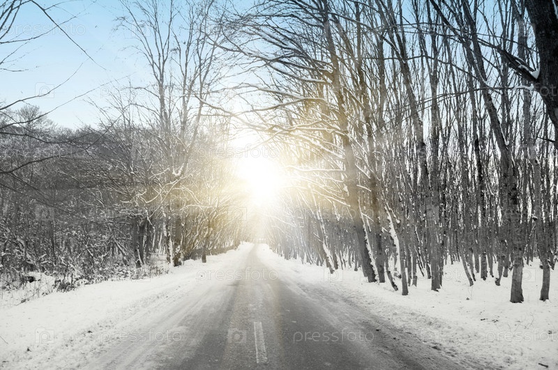 Зимняя дорога через лес