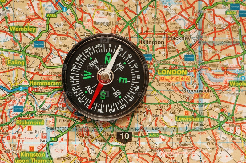 Компас на карте Великобритании - пригород Лондона
