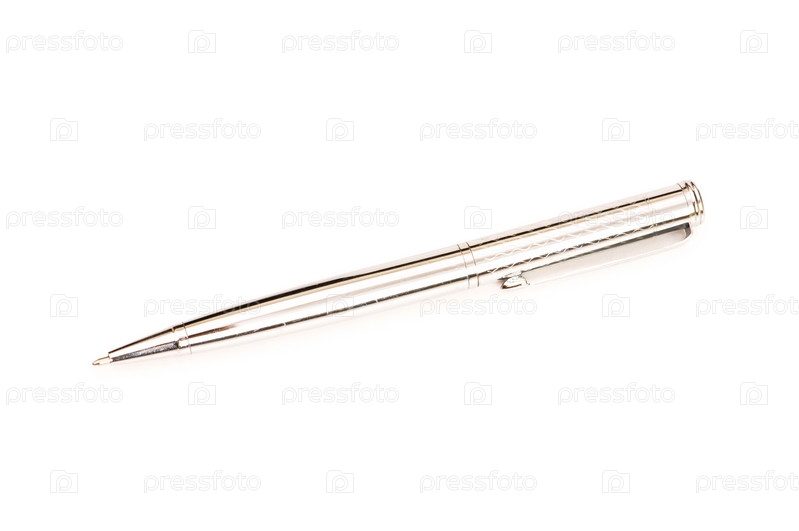 Серебряная ручка на белом фоне