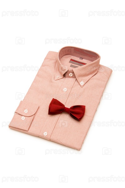 Розовая рубашка и красная бабочка на белом фоне
