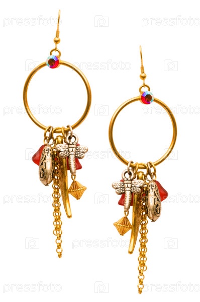Золотые серьги на белом фоне