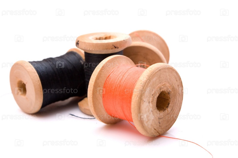 Катушки ниток на белом фоне