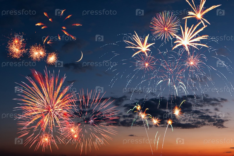 Фейерверк на фоне вечернего неба
